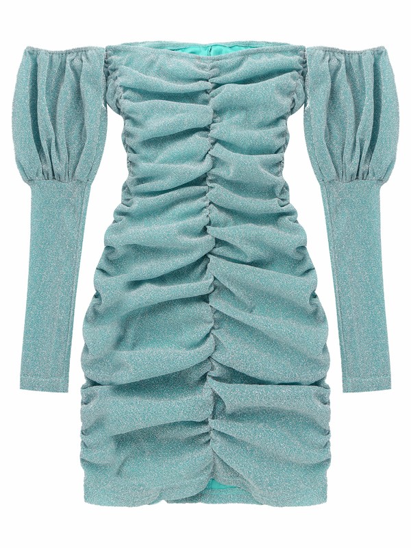 Featuring with solid color, long sleeve, o neck, sparkle shiny appearance, above knee length.