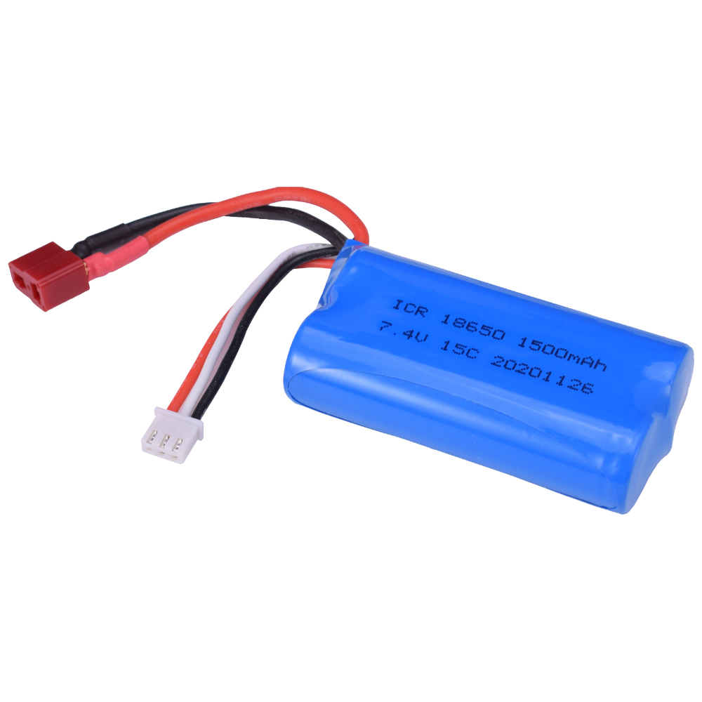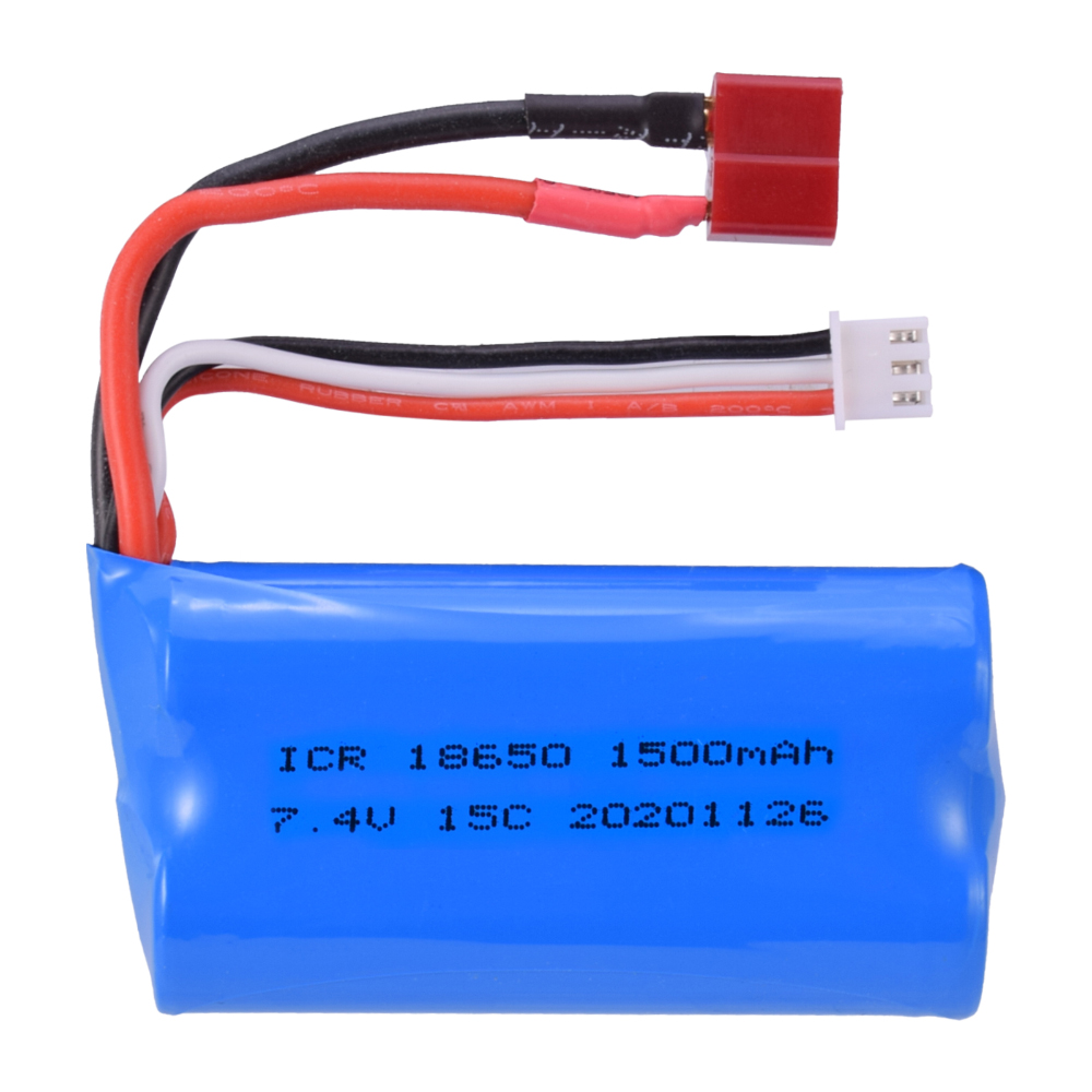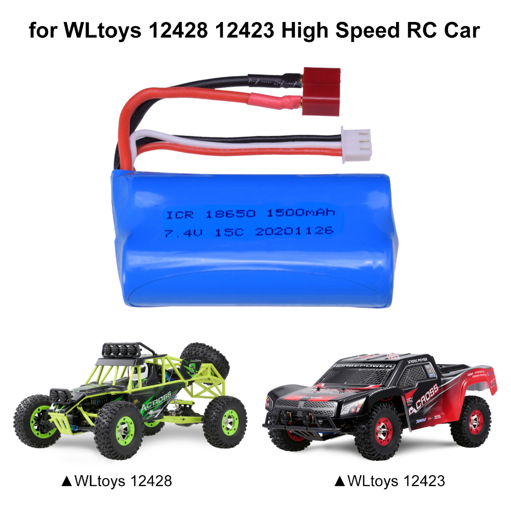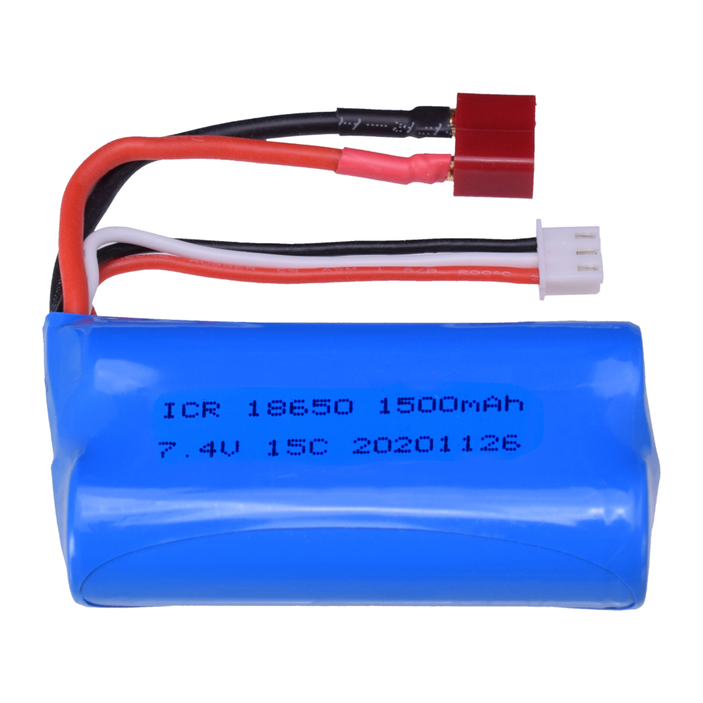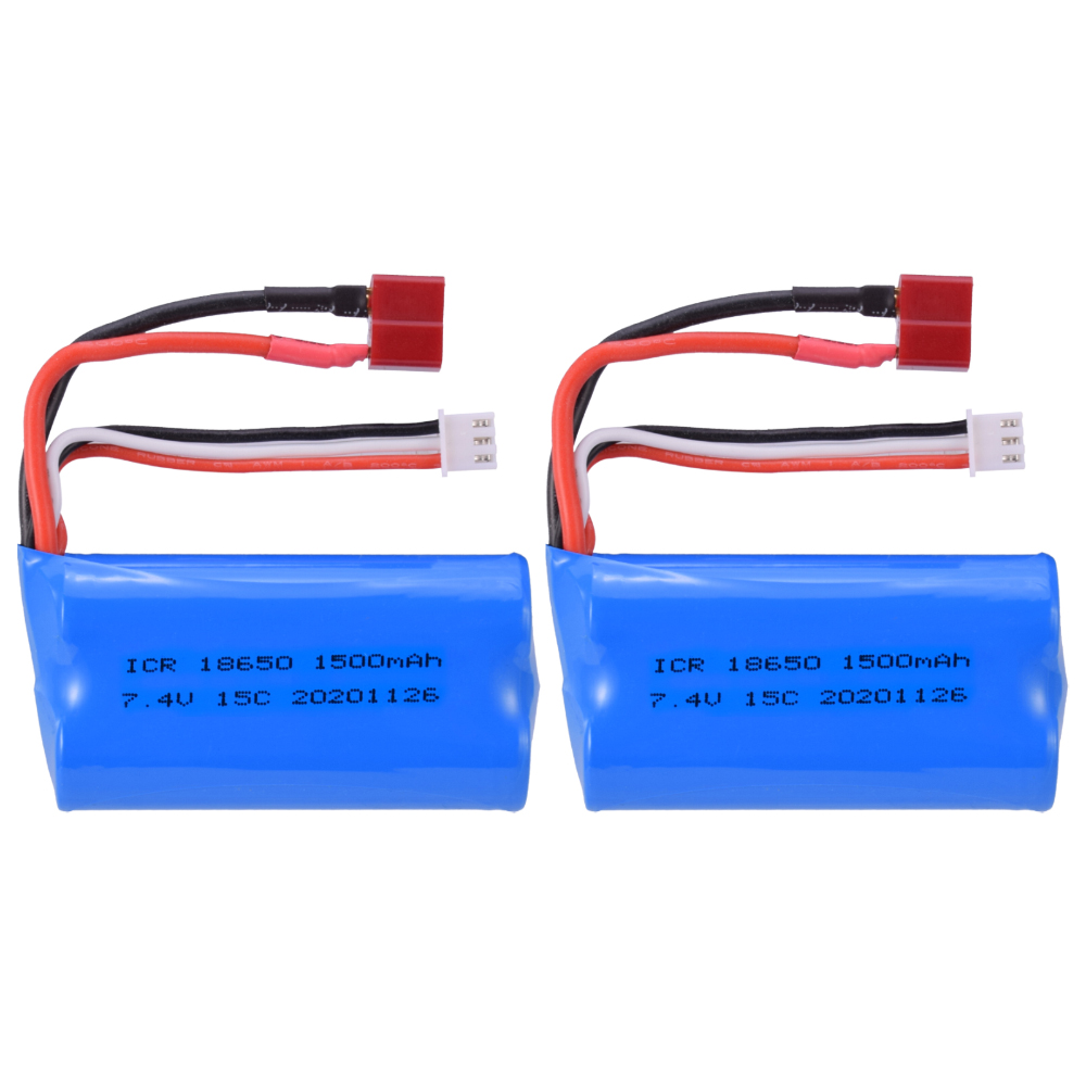 2PCS LiPo Battery for WLtoys 12428 12403 High Speed RC Car 7.4V 1500Mah 18650 T Deans Plug