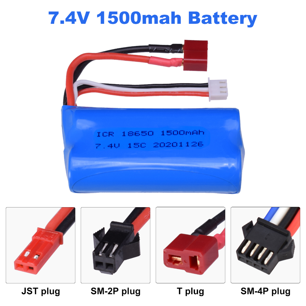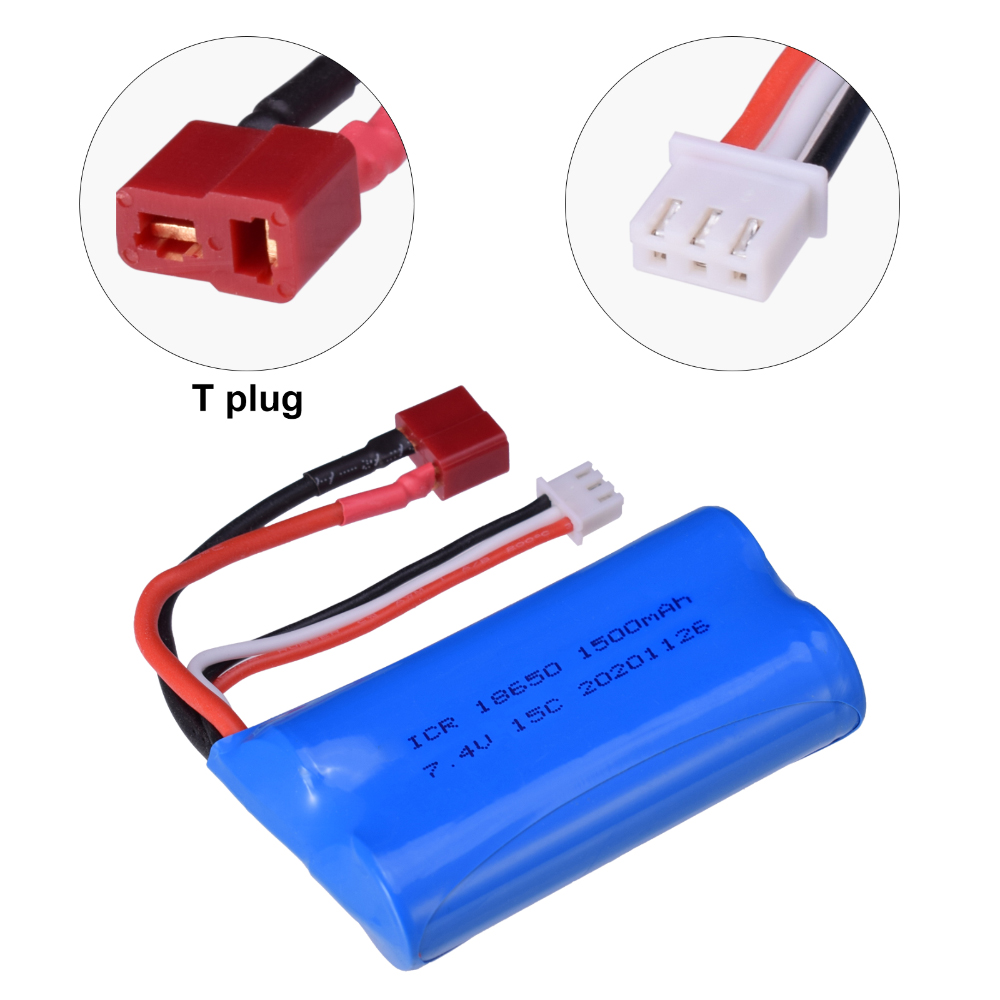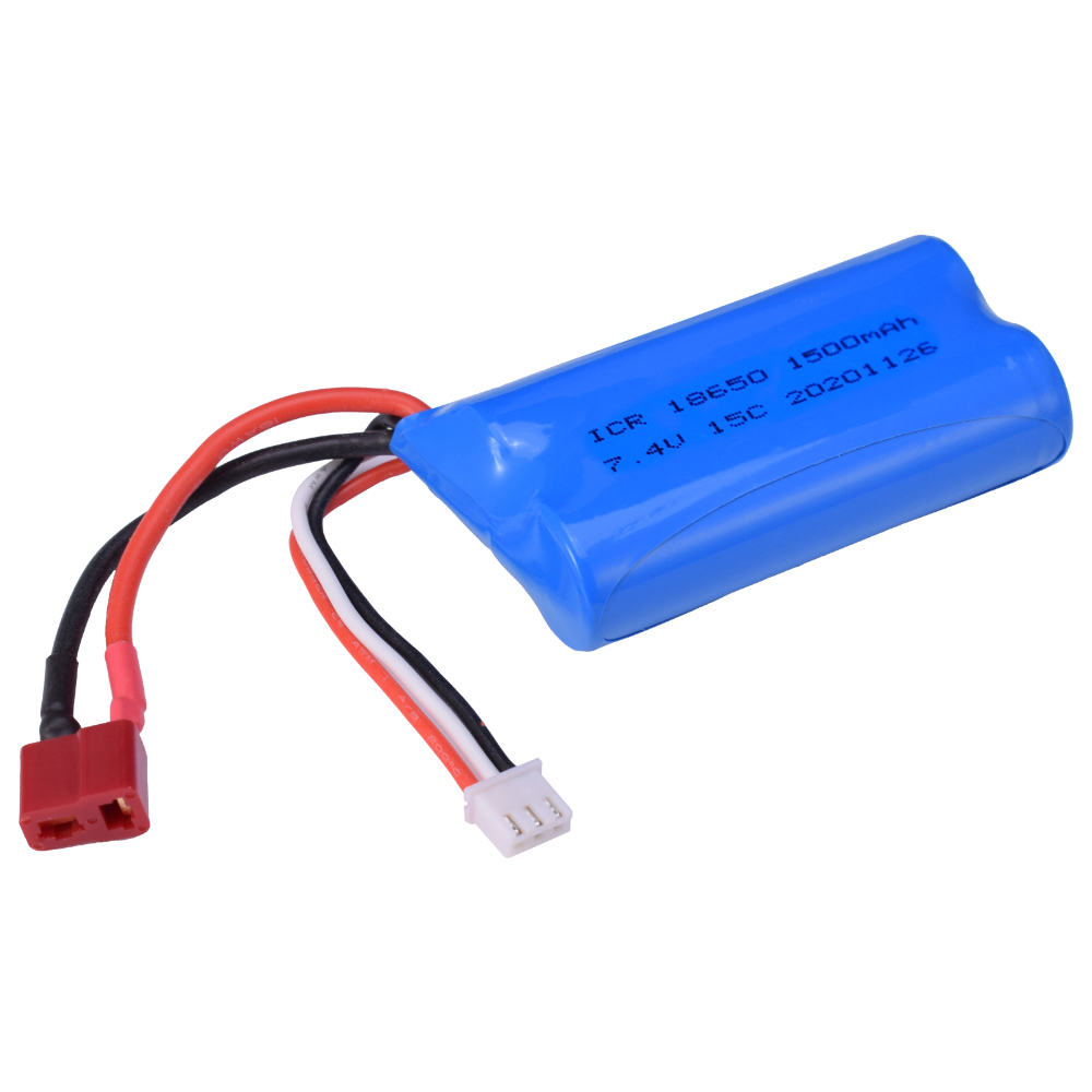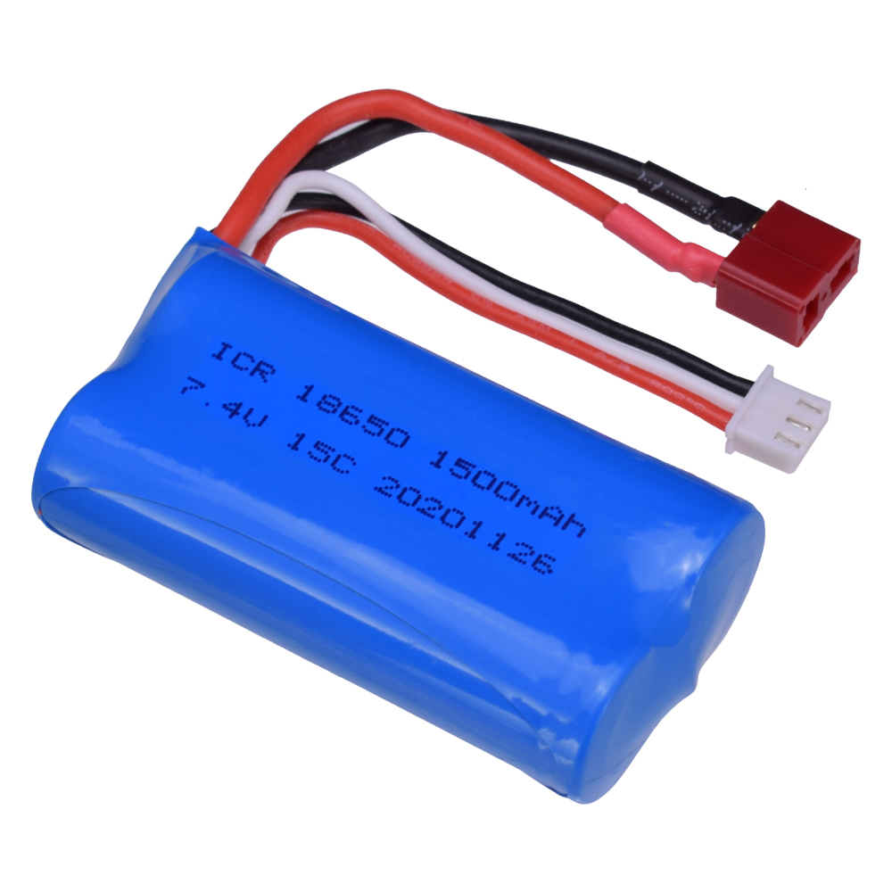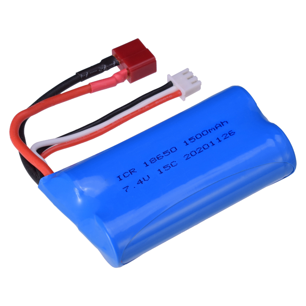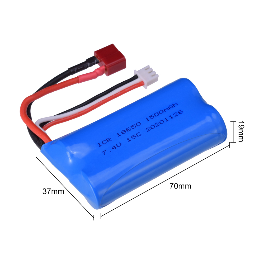 2PCS LiPo Battery for WLtoys 12428 12403 High Speed RC Car 7.4V 1500Mah 18650 T Deans Plug