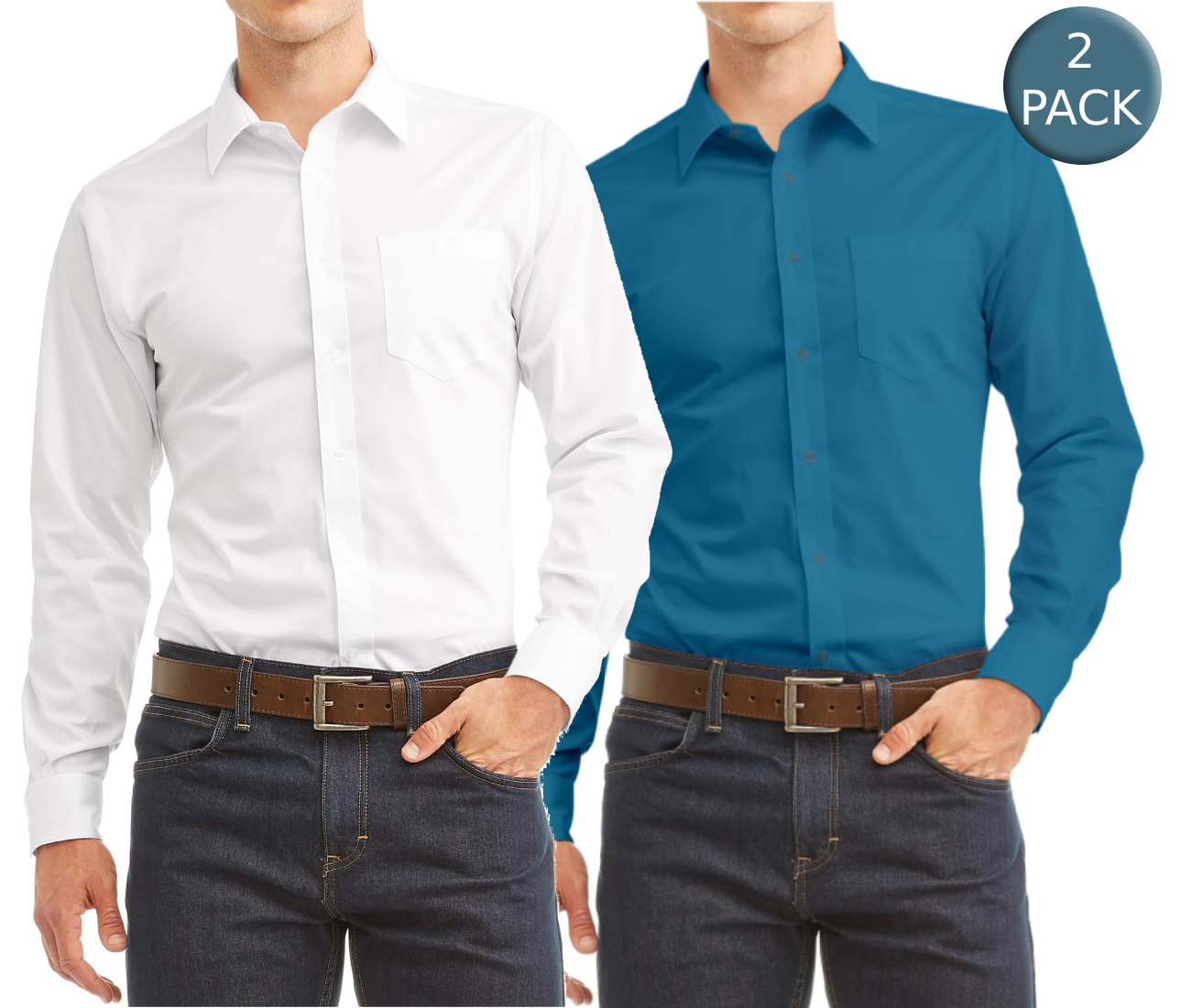 2 Pack Men's Berlioni Long Sleeve Button Regular Dress Shirt Turquoise - White