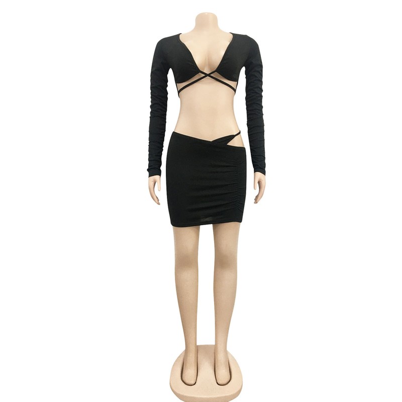 Off shoulder, long sleeve, cutout front design, well pair with high heels, sandals, etc.