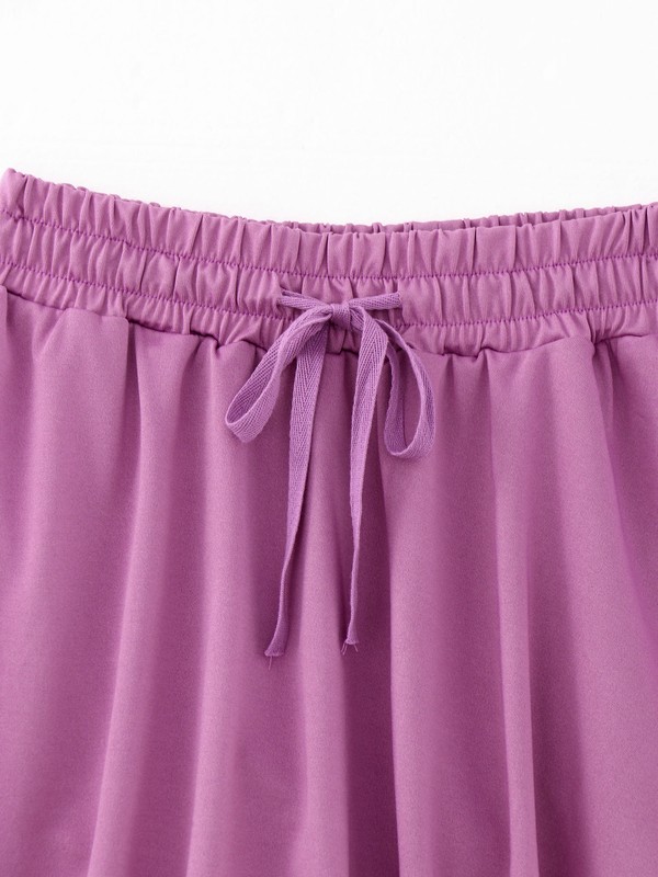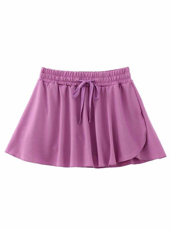Pure color, elastic waistband with drawstring, skirt with built-in shorts for better protection when sporting.