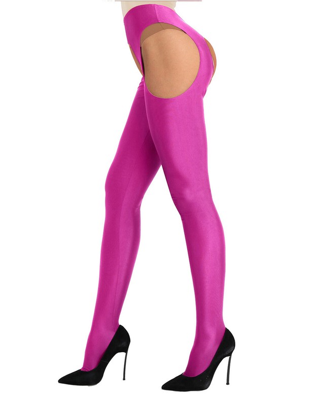 Elastic waistband, hollow out and open crotch design, full-footed, solid color