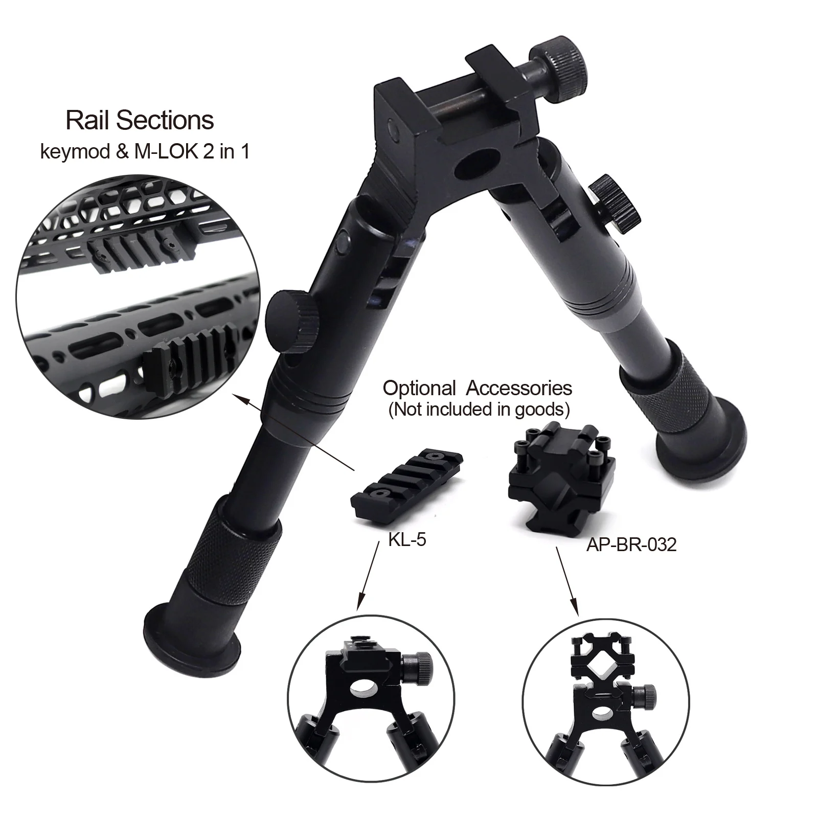 Choice: Just the bipod / Bipod with 5 slot rail section / Bipod with AP-BR-032 ( Adapter )