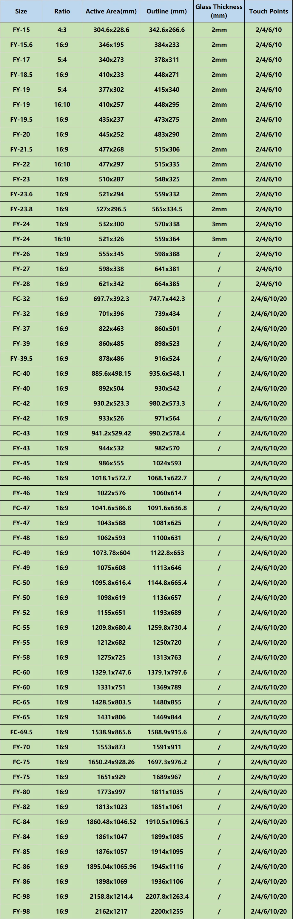 Specification for 65 inch 20 points IR multi touch screen :
