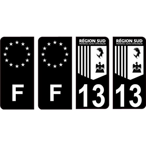 Département 13 région Sud logo noir blanc- PACA logo - F europe noir - 4 Autocollants Stickers Auto Plaque d'immatriculation