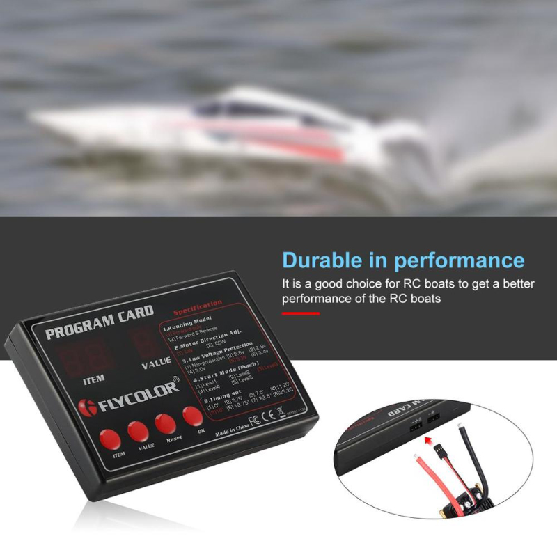 Description: 1.This Programing Card is easy to use. 2.It can program running model, motor direction, low voltage protection, start mode, timing. 3.It is a good choice for RC boats to get a better performance of the RC boats.