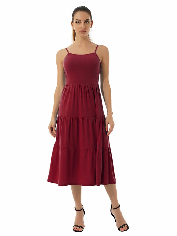 Women's Spaghetti Strap Tiered Long Maxi Dress Casual Loose Flowy Swing Sundress