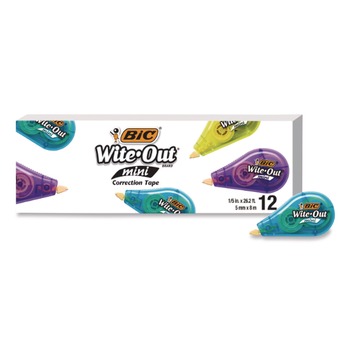 BIC Wite-Out Brand 0.2 in. x 26.2 ft. Non-Refillable Mini Correction Tape - Assorted (1-Dozen)