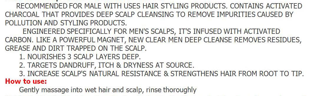 | CLEAR Men Deep Cleanse Anti-dandruff Shampoo Activated Charcoal Citrus Peel 370g |