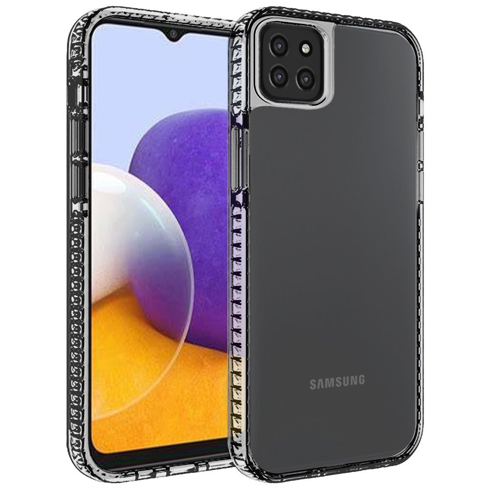 Phone Case for Samsung Galaxy A22 5G Transparent HD Crystal Clear Hybrid Protective Anti-Scratch Shock Absorption Hard PC Back & TPU Bumper Thick Diamond Design Edged Colorful Buttons [Slim Thin] Phone Cover Cases
