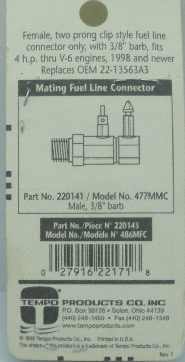 Tempo 486MFC Female Fuel Connector Honda Mercury 3/8" Barb