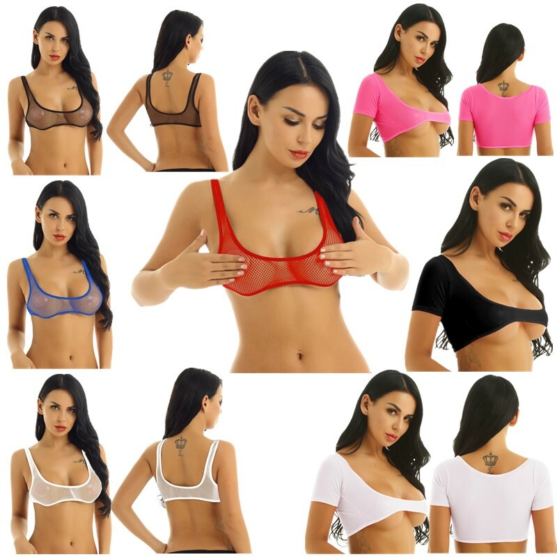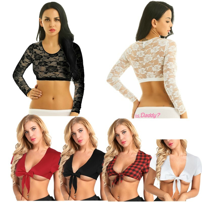 Women adult sheer crop top, slim fit and see through design.