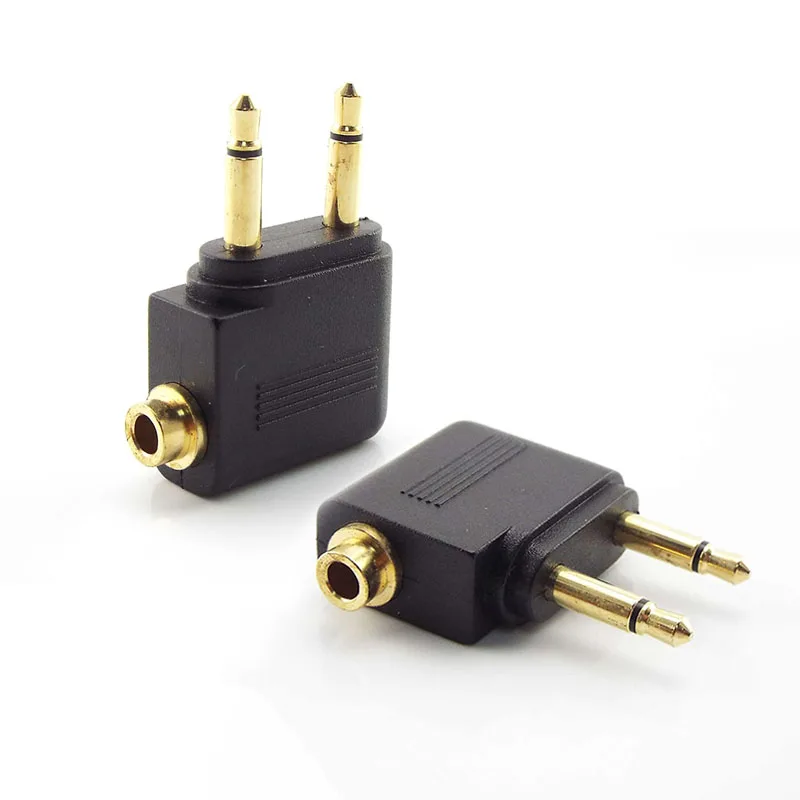 2pcs 3.5mm Airline Airplane Earphone Headphone Headset Audio Connector Travel Jack Plug Adapter Gold Tone for Headphone MP4