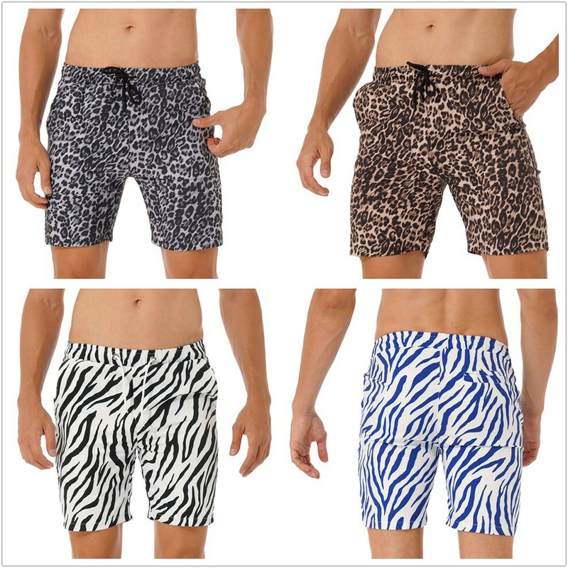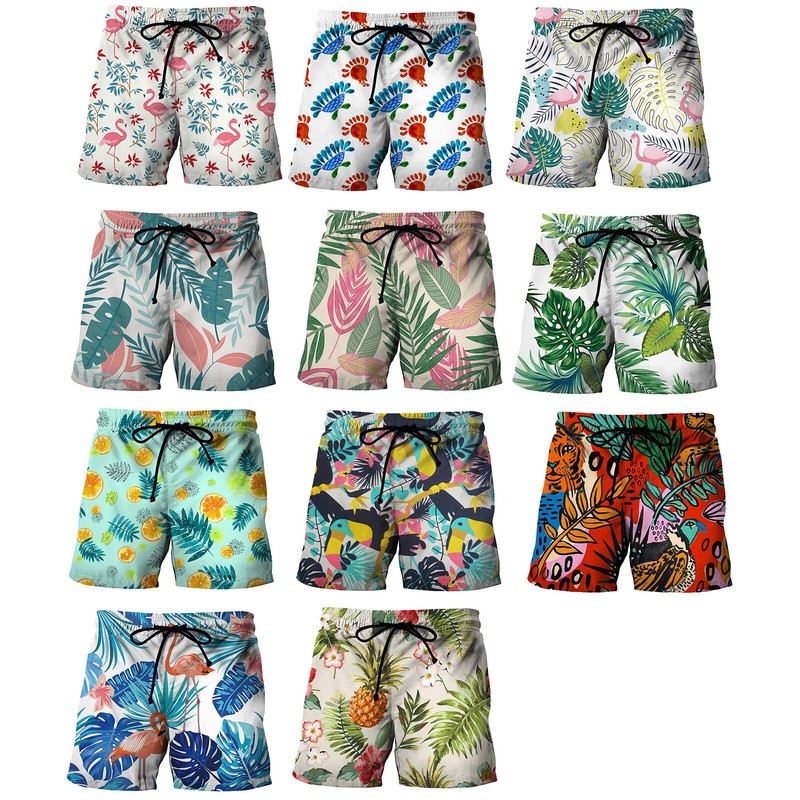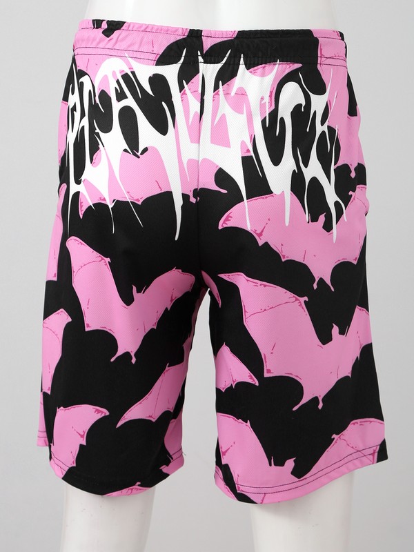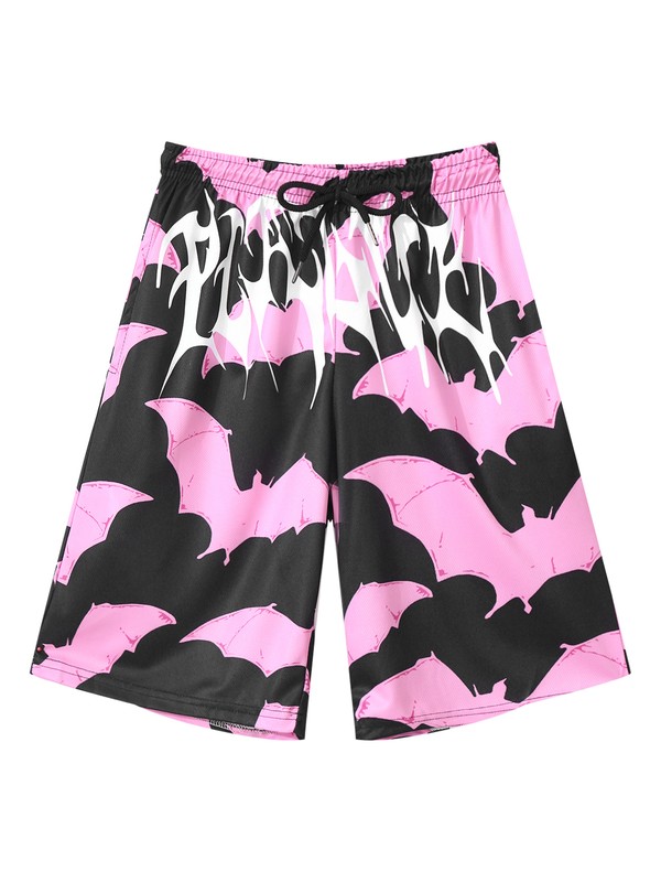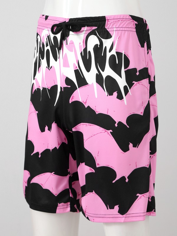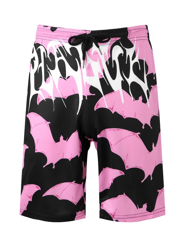 Men Drawstring Elastic Waistband Swimming Trunks Beach Bats Printing Board Shorts.