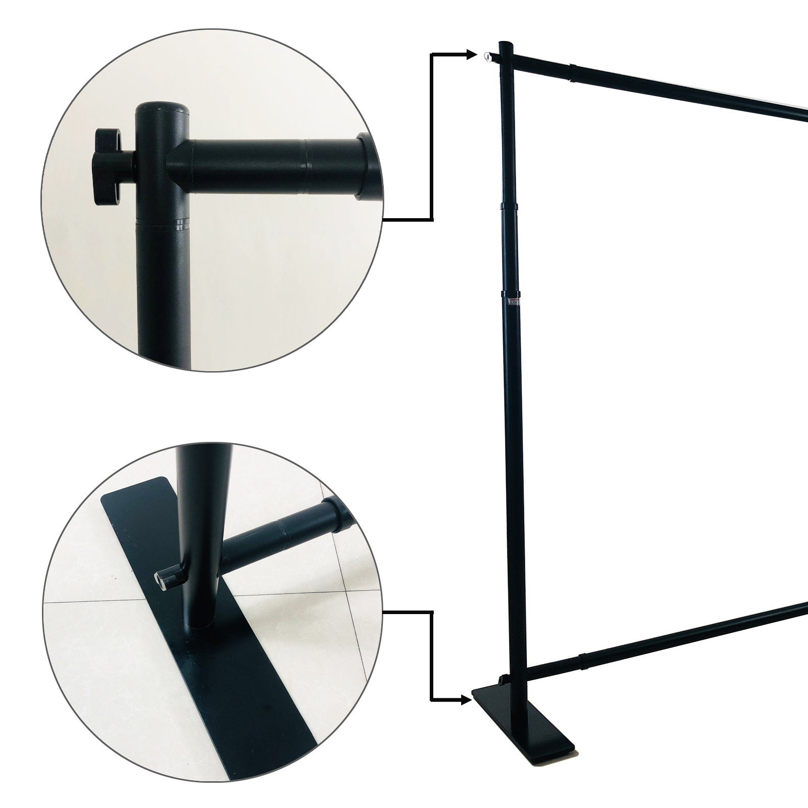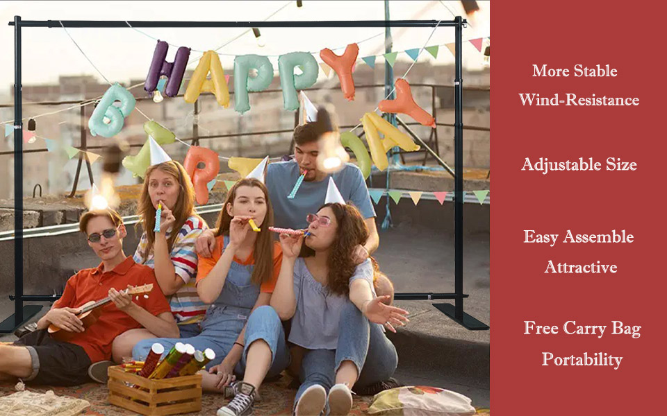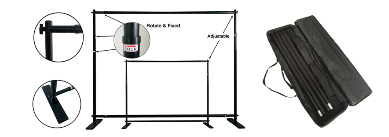 Adjustable background banner frame can be adjusted freely, providing more size options. Screw the rod to the proper position.