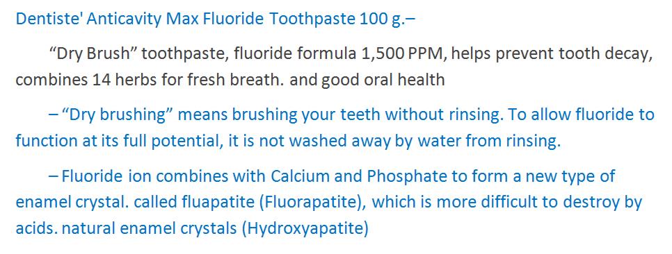 | Dentiste Anticavity Max Fluoride Do Not Rinse Dry Brush Toothpaste 100g. |