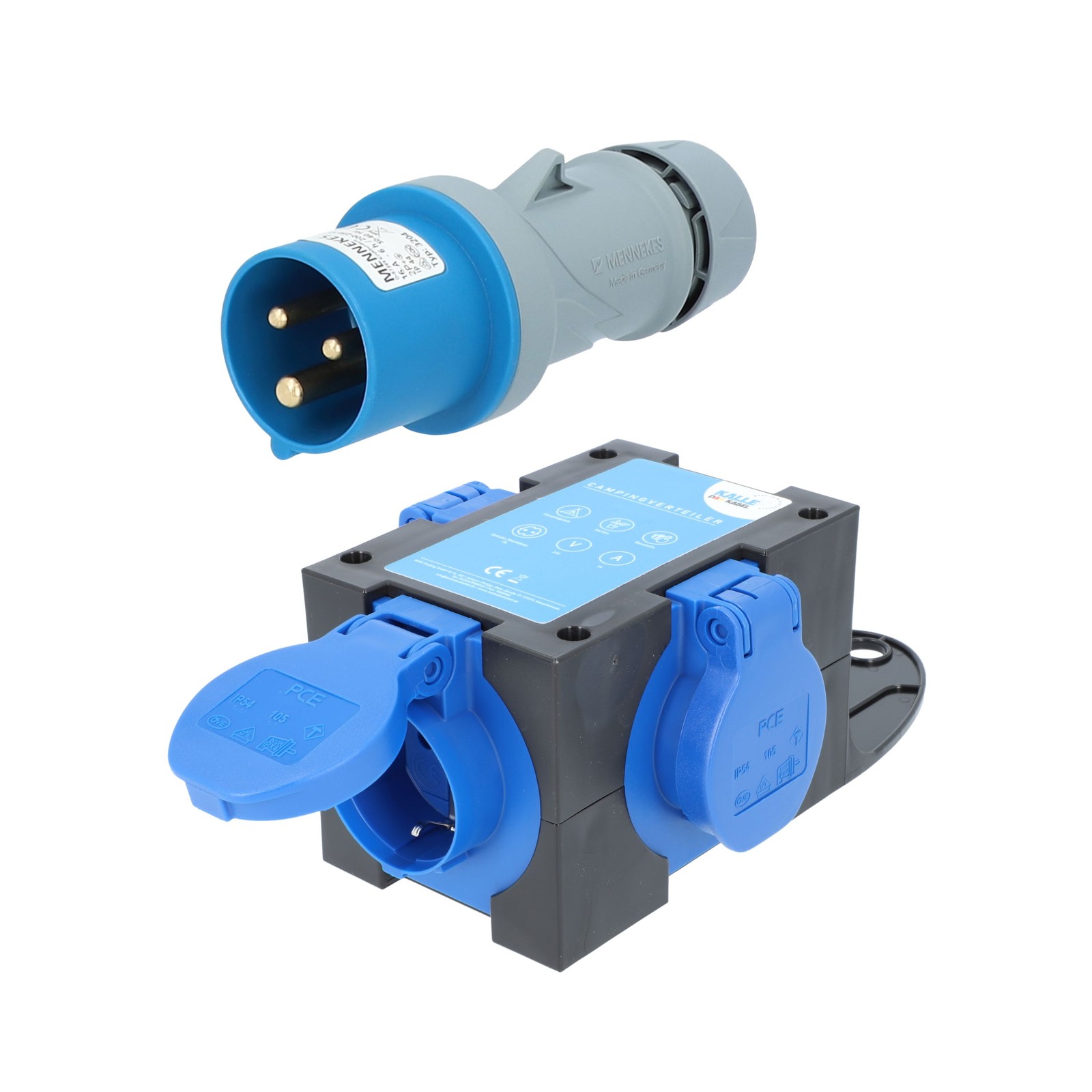 KALLE DAS KABEL CEE Camping-Adapterkabel 230V H07RN-F 3G 2,5 mm² 1,5-50 Meter CEE auf SCHUKO-Verteiler