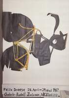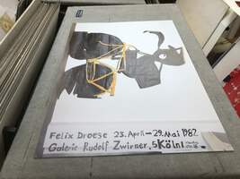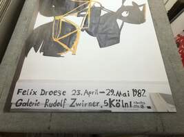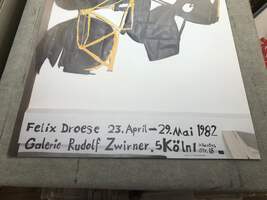 Sku: YY2466Artist: Felix DroeseTitle: Galerie Rudolf ZwirnerYear: 1982Signed: NoMedium: Offset LithographPaper Size: 33 x 23.5 inches ( 84 x 60 cm )Image Size: 33 x 23.5 inches ( 84 x 60 cm )Edition Size: UnknownFramed: No: Inquire with our experts for framing suggestions.Condition: A-: Near Mint, very light signs of handlingAdditional Details: This original poster was created by Felix Droese for his 1982 exhibition at Galerie Rudolf Zwirner. Known for his politically charged and thought-provoking art, Droese’s poster captures the bold essence of his work from this period. A rare collectible, it reflects Droese’s unique artistic voice and the influential role of Galerie Rudolf Zwirner in showcasing avant-garde art during the early 1980s.