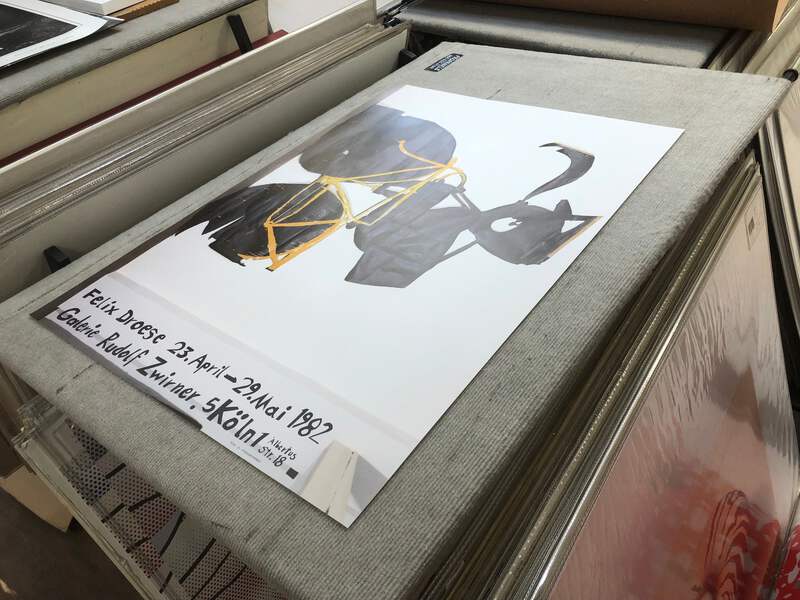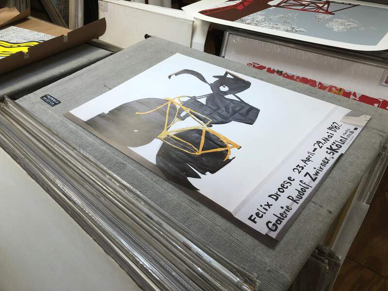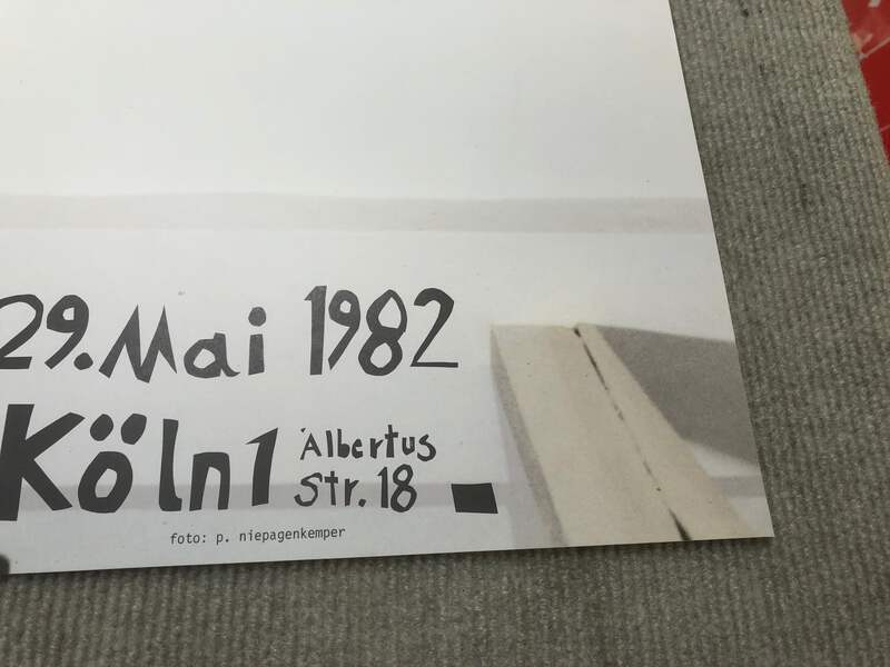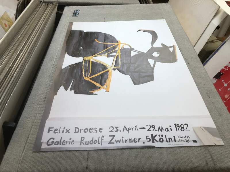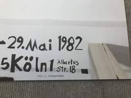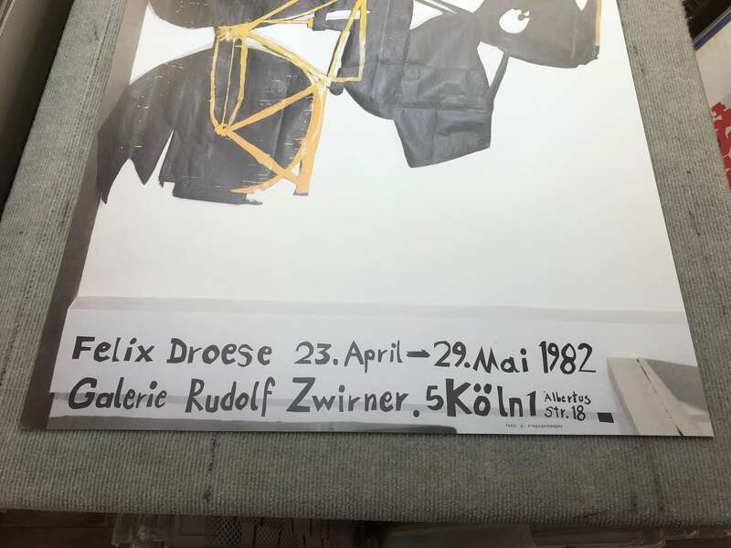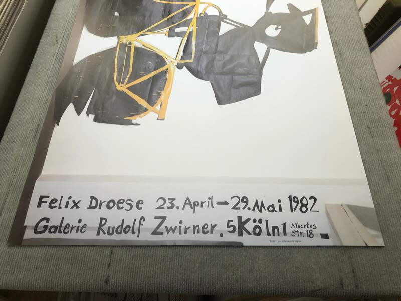 Additional Details: This original poster was created by Felix Droese for his 1982 exhibition at Galerie Rudolf Zwirner. Known for his politically charged and thought-provoking art, Droese’s poster captures the bold essence of his work from this period. A rare collectible, it reflects Droese’s unique artistic voice and the influential role of Galerie Rudolf Zwirner in showcasing avant-garde art during the early 1980s.