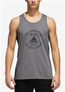 Signature 3-Stripes detail trim the sides of an updated, slim-fit tank marked with logo prints at the chest. The scooped neck profile adds comfort to the sculpted sleeveless design.
