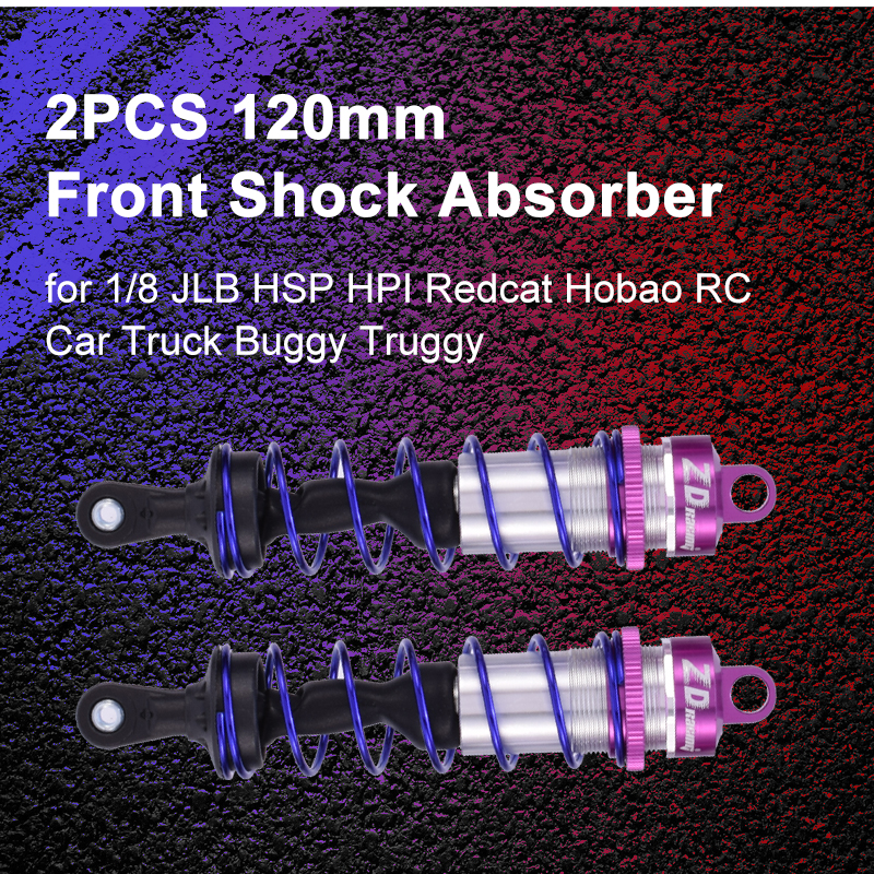 2pcs ZD Racing 120mm Front Shock Absorber Purple Damper Suspension for 1/8 JLB HSP HPI Redcat Hobao RC Car Truck Buggy Truggy
