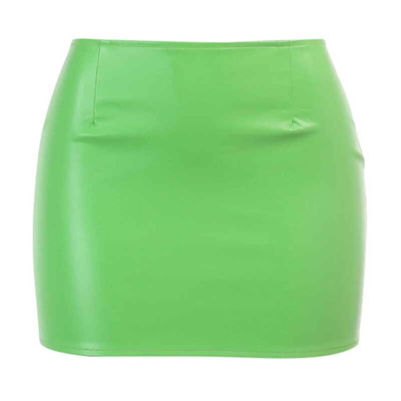 Women Fashion Zipper Back PU Leather Miniskirt Ladies Solid Color Bodycon Pencil Skirt.