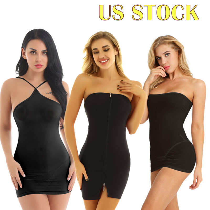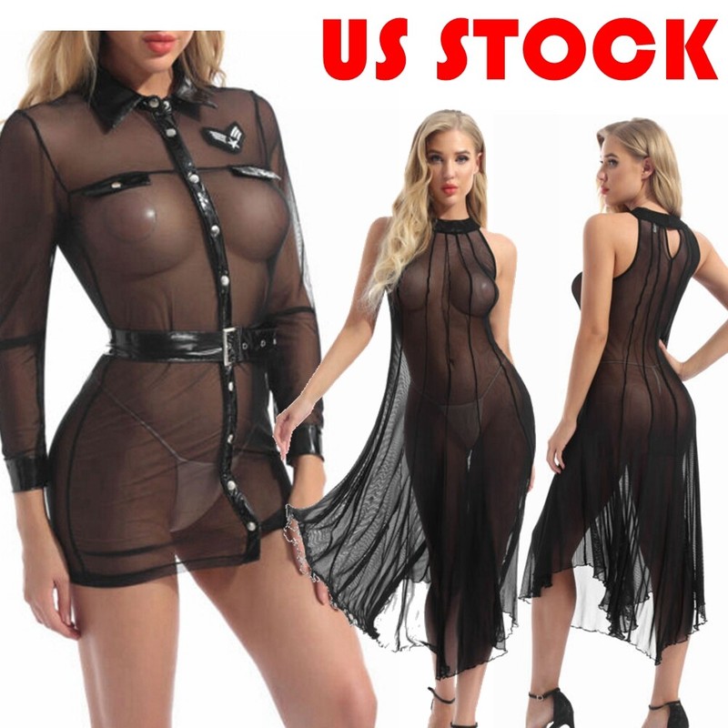 Women Stretchy Fishnet Mini Dress See-through Mesh Sleeveless Lingerie Dress.