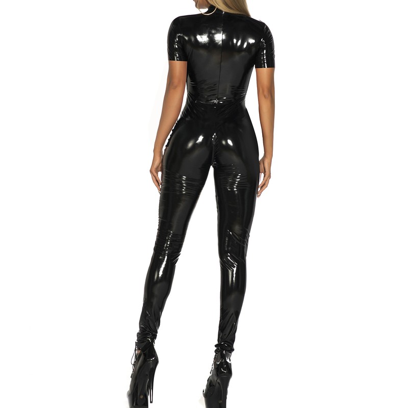 This slim fit patent leather catsuit, perfect show your charming curve and makes you hot and attractive.
