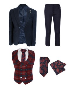 Designer Boys Navy Blue Wool Blazer Chino Proms Dinner Dress Suit Outfit Set