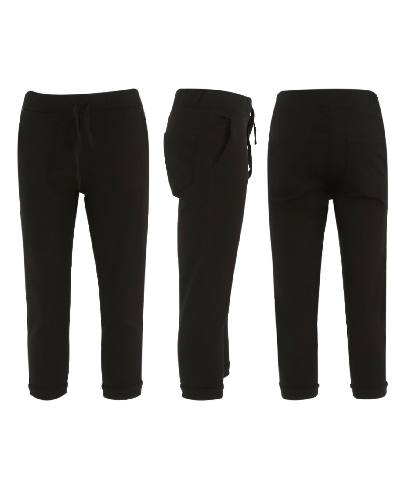 The trousers have an elastic waist with a stretch fit and front ribbons
