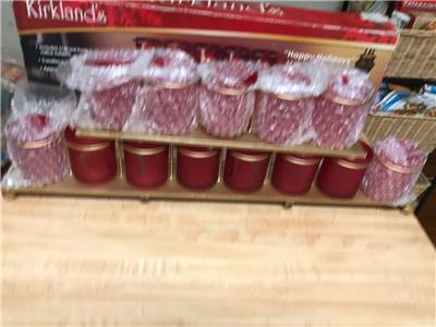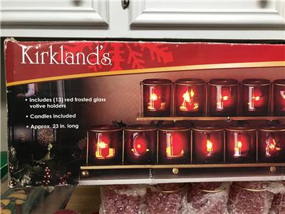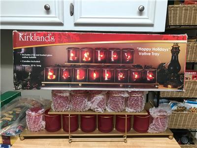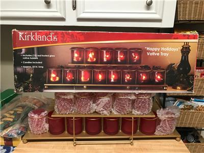 Kirkland’s “Happy Holidays” Votive Tray W/ 13 Red Frosted Glass Votive Holders
