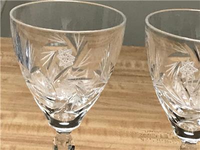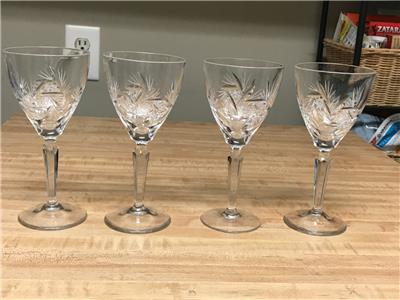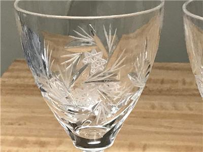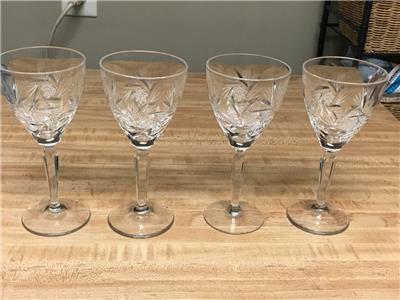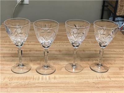 FOUR (4) PINWHEEL & 8 POINT STAR HAND CUT HANDBLOWN CRYSTAL WINE GLASSES 6 3/8" TALL.