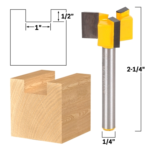 This spoilboard surfacing router bit has a cutting diameter of 1" and a cutting depth of 1/2". This bit also features 3 bottom and side sharpened blades and a 1/4" shank.