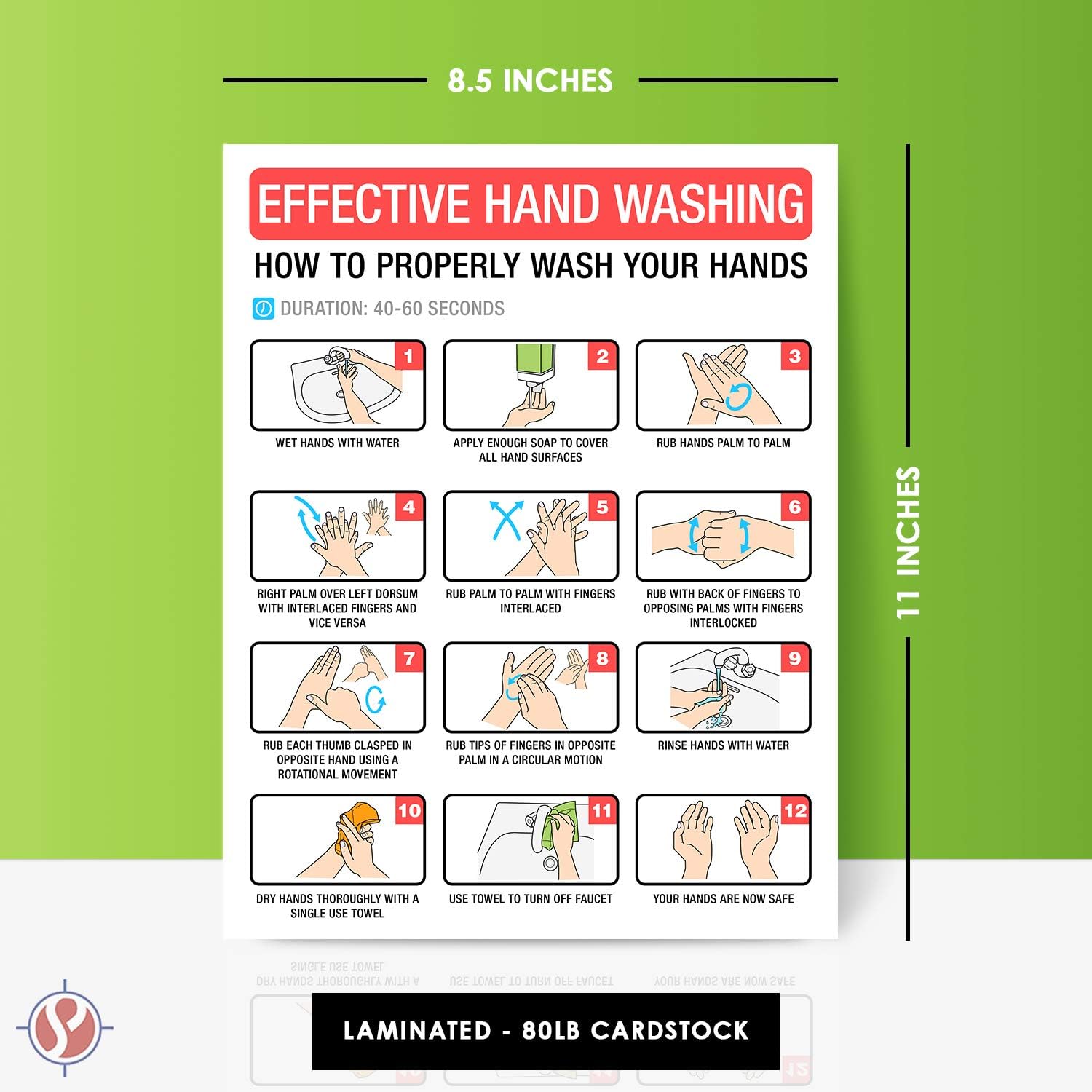 EFFECTIVE HANDS WASHING. Great for teaching kids and adults the proper way to clean and wash your hands. The instructions are clear and numbered with matching images for easy and fast learning.