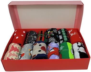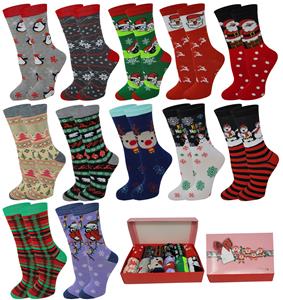 - Value pack : 12 Pairs Bulk Lot Novelty Fun design Socks . Come with elegant Xmas gift box . So, You can share with friends and Families .