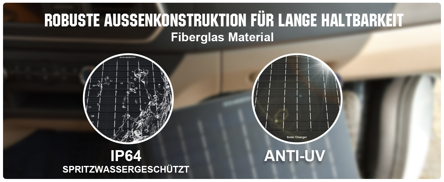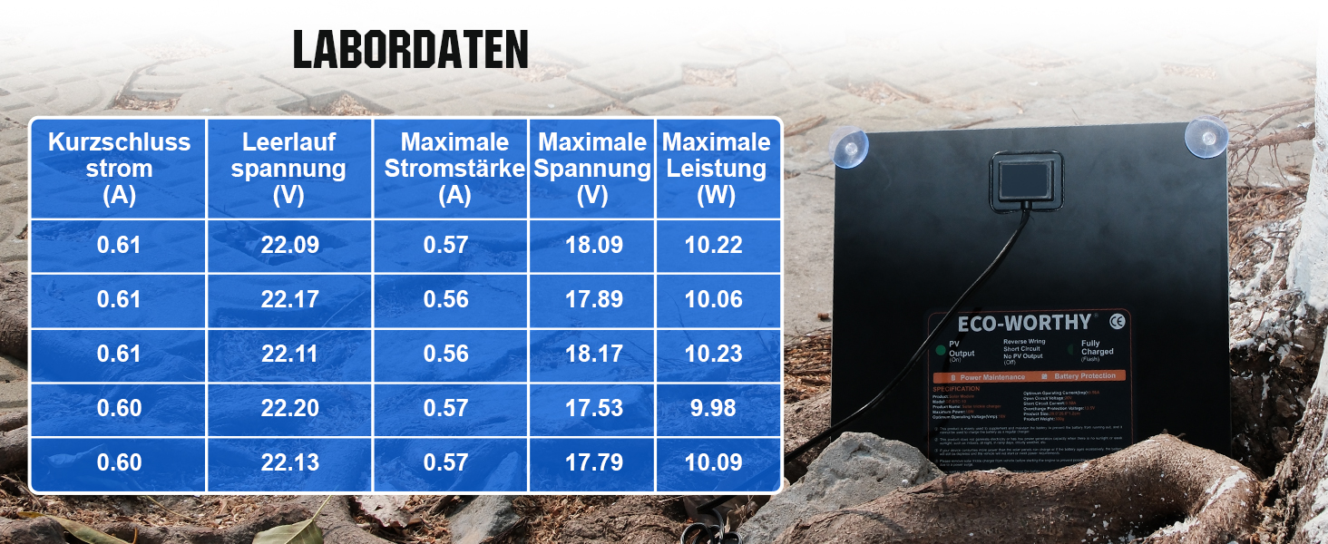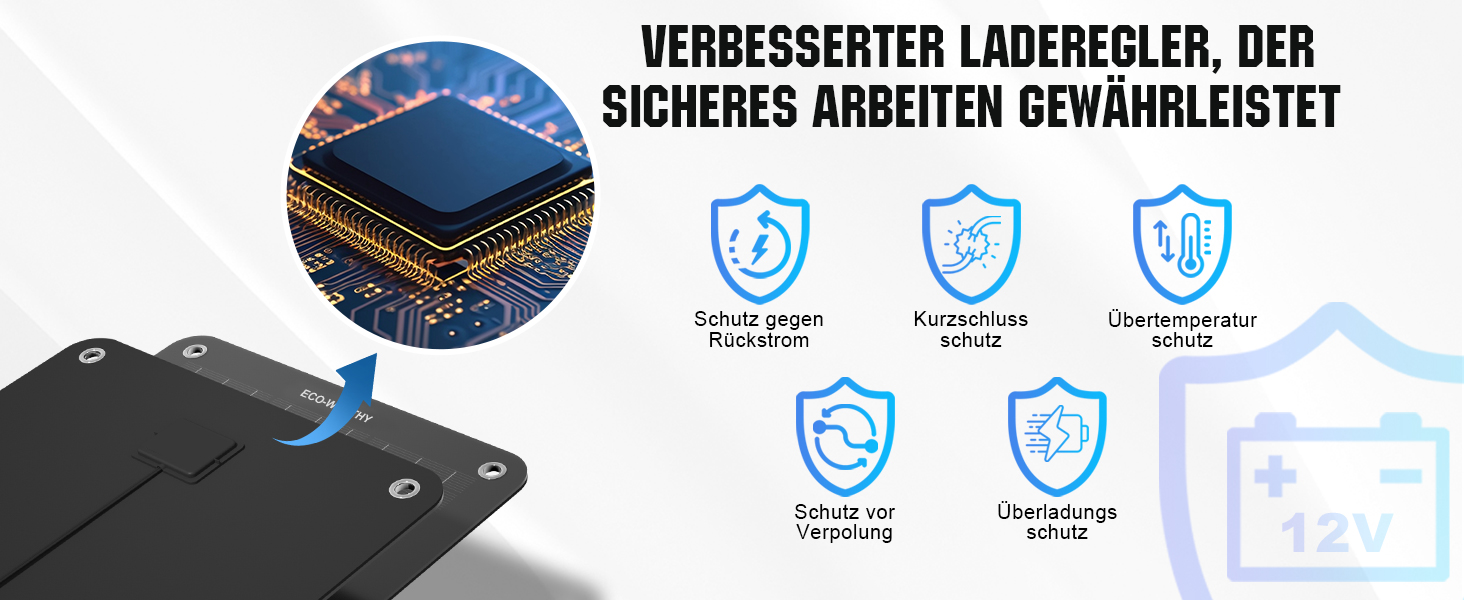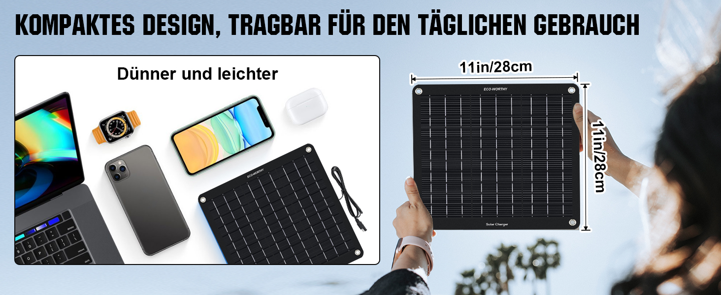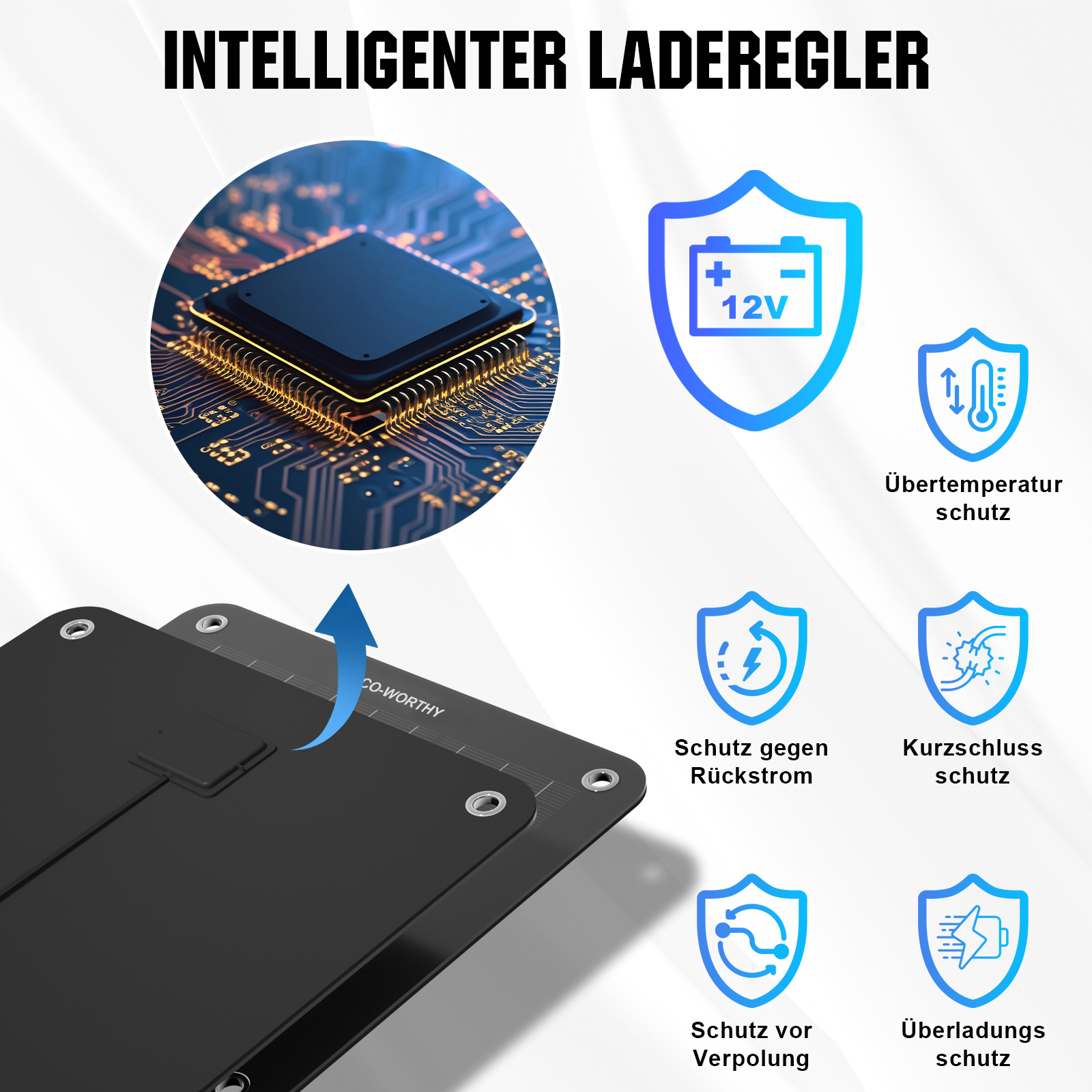 Die 12V-Batterie wird nicht ordnungsgemäß über 12,4 V gehalten, es kommt zu Sulfatierung, die die Hauptursache für den Batterietod ist. Aus diesem Grund entlädt sich die Fahrzeugbatterie bei zu langem Abstellen des Fahrzeugs leicht. Eco-Worthy Solar Erhaltungsladegerät verlängert die Lebensdauer durch kontinuierliches Erhaltungsladen der Batterie.