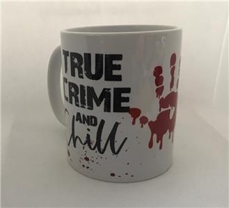 You are purchasing an 11 oz Sublimation Printed Mug featuring CRIME AND CHILL THEME Design