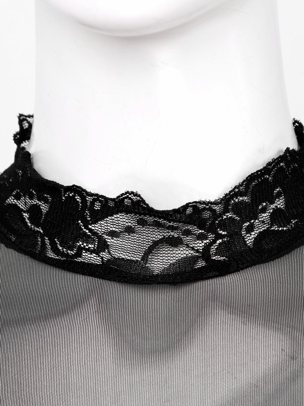 See-through mesh design, neckline and cuffs with lace trim details, simple and chic.