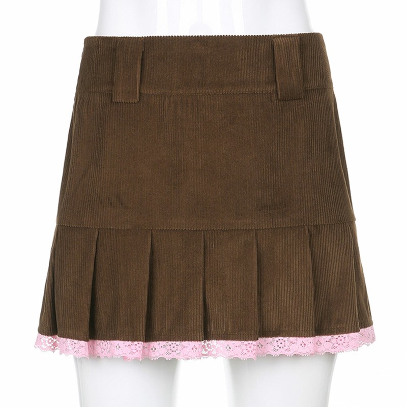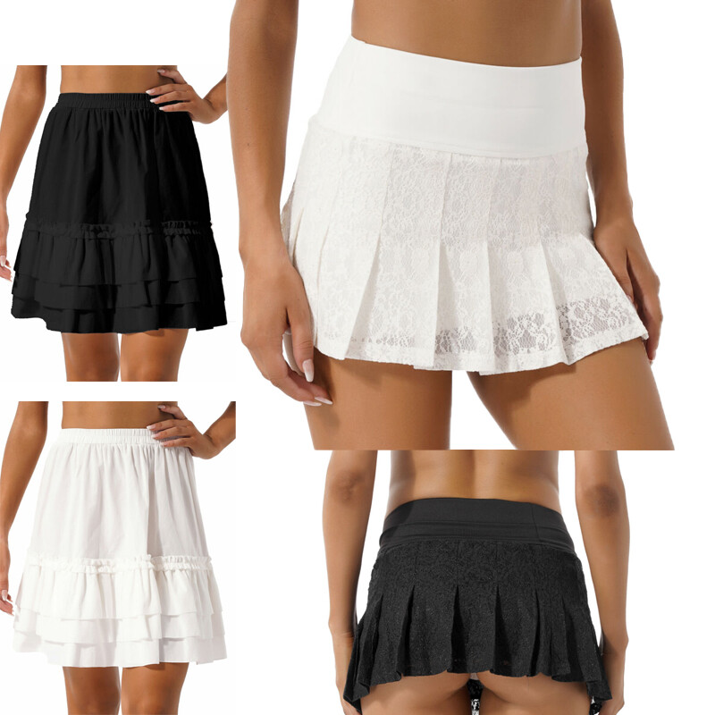 Women Flower Pattern See-through Lace Skirt Mid Waist Elastic Waistband Sheer Miniskirt Nightwear.