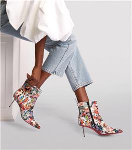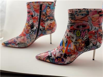 The Epic Booty ankle boots from Christian Louboutin showcase an all-over print named Oh Xtian; colorful as ever, it’s characterised by a collage-like pattern that’s inspired by retro posters, magazine clippings and the founder’s feminine vision. They also feature a metallic Pik heel – another one of the Parisian designer’s fascinations – as the mirror-like quality gives the illusion that the wearer is standing on their tiptoes.