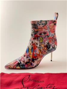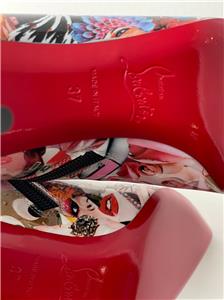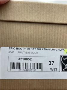 - SIZE: 37.5 (Insole: 9 5/8" approx. Heel: 2.25", Shaft: 5", 11.25" around the opening) Brand New in the original Louboutin box with s Signature Dust Bag. Small black mark on the sole of one boot.
