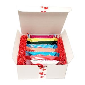 Please note that these are MINI bars, not full size bars. They come in a white semi-gloss gift box wrapped around with beautiful heart design satin ribbon. A chart to identify each flavor is included in each box.