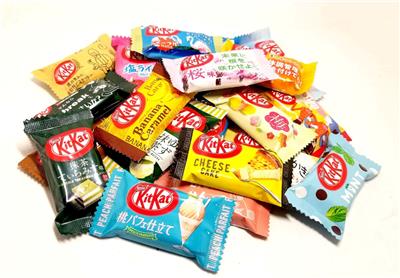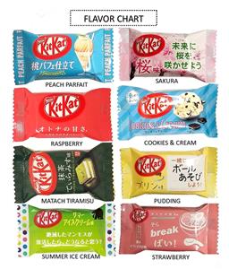 Our special Valentine's Day gift box collection of Japanese Kit Kat MINI Bars. Limited Edition 8 variety flavors, 1 bar each flavor, total of 8 mini bars. Each bar has 2 fingers.