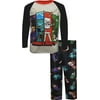 Boys' pajamas set features characters from the popular video game Minecraft. Top is a cool polyester; pants are soft flannel. Flame resistant. Machine washable. Imported.