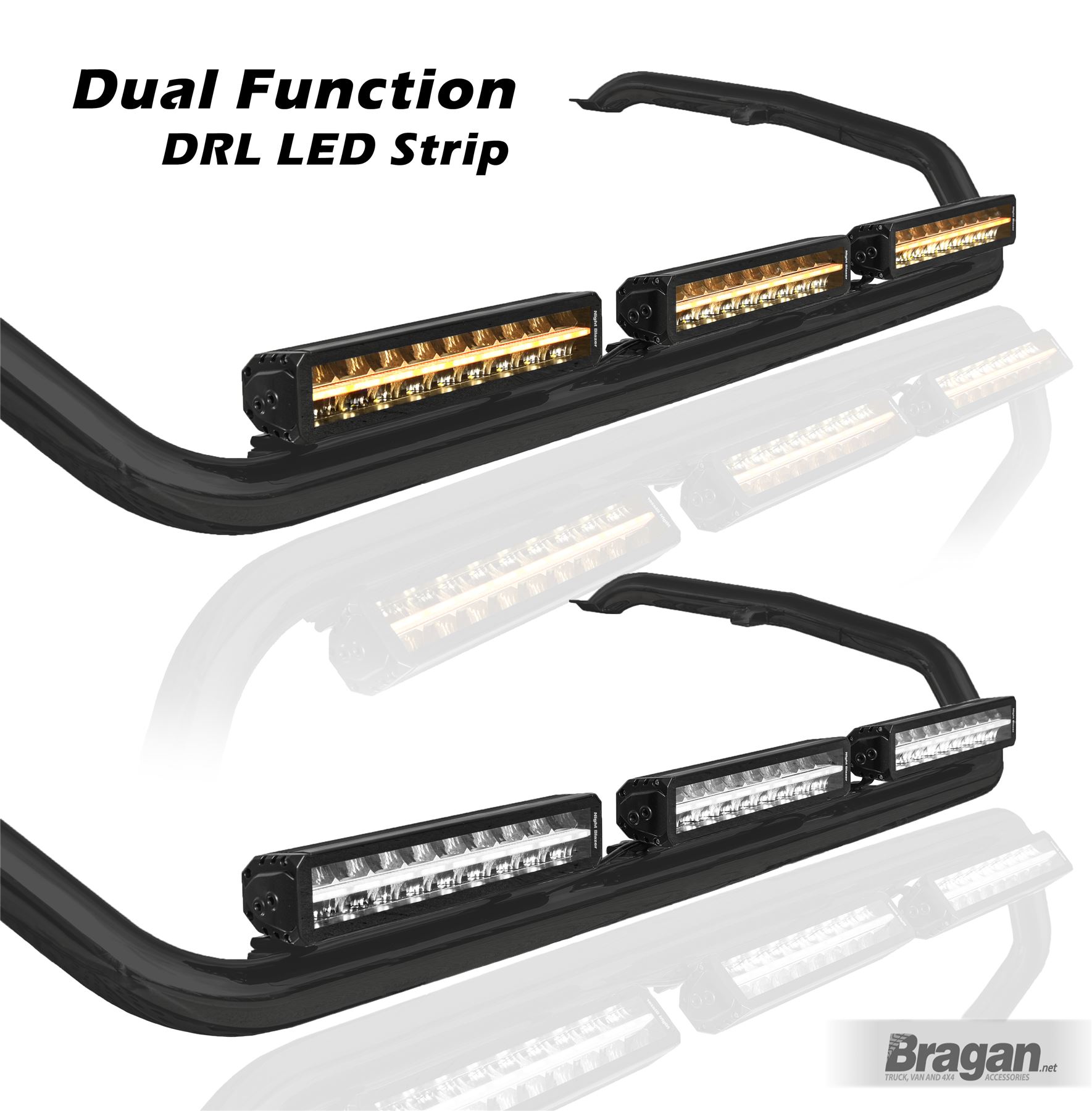 High-quality 12v / 24v Night Blazer 17 inches / 43.18 cm Dual Row LED Light Bar With DRL / Park Light Row Function. These light bars come equipped with 7D Reflectors, enabling a high level beam of focus, ensuring the maximum amount of light at the greatest distance. These LED Light Bars, not only offer superb illumination, but are also manufactured to an extremely high standard, and come complete with a stylish black aluminium housing and stainless steel brackets.