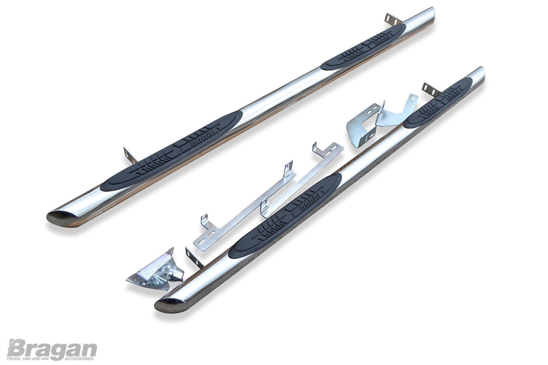 High quality polished Stainless Steel Side Bars - set of 2 (Pair) with Step Pads x4 for Jeep Renegade (2015 - present model). These top of the range side bars will have your vehicle looking top spec at a fraction of the cost of the genuine items but with the same high quality.