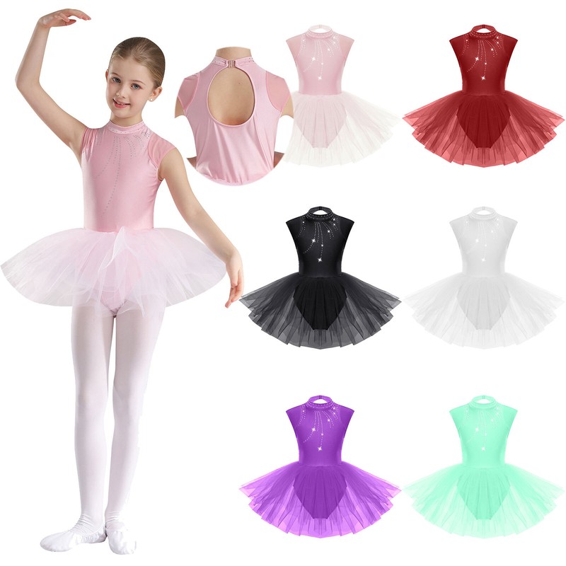 Ballet leotard dress is made of polyester, cotton and mesh material, hand wash.