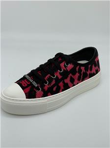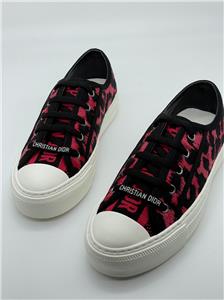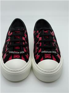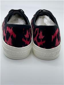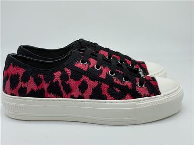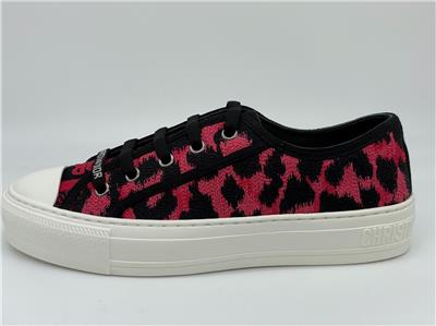 The Walk'n'Dior sneaker features the D-Leopard motif and is crafted in dark pink and black embroidered cotton, it has a relaxed style, completed by signatures on the tongue, rubber sole and laces for a timeless look. Signatures on tongue, sole and laces.. Rubber sole with star, Christian Dior's lucky symbol. Made in Italy.