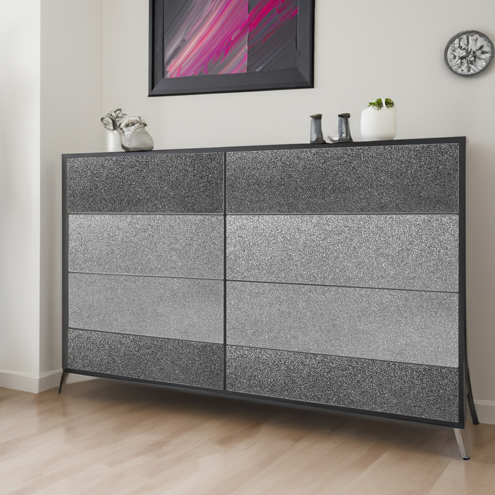 Die Glitzerfolie eignet sich hervorragend zur Dekoration kleiner Flächen, wie zum Beispiel Schubladenfronten, Bilderrahmen oder verschiedenen dekorativen Gegenständen. Dank Ihr erhalten Spiegel, Aufbewahrungsboxen, Schmuckkästchen, Accessoires oder sogar eine kleine Kommode auf dem Schreibtisch einen einzigartigen, glänzenden Charakter.